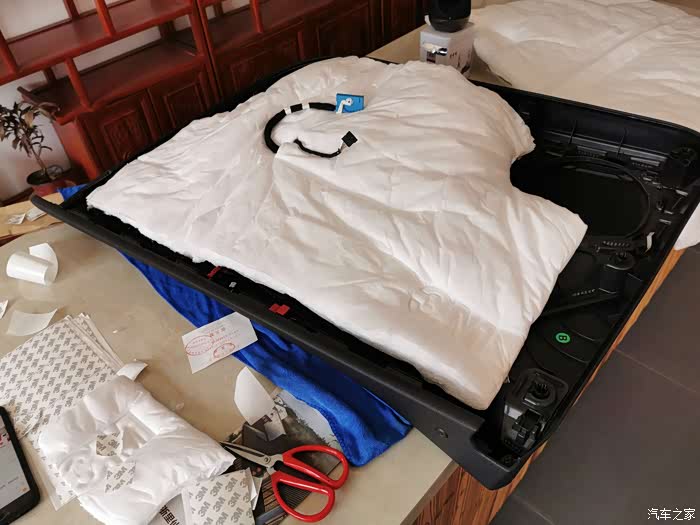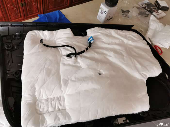 隔音棉制作。 需要注意螺丝洞。和拉手位置要挖洞出来,