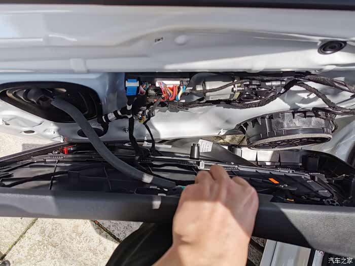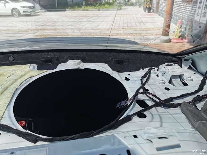 先扣D柱子饰板,需要很用力才能下来.然后再卸掉低音炮上的饰板,上面有4个螺丝