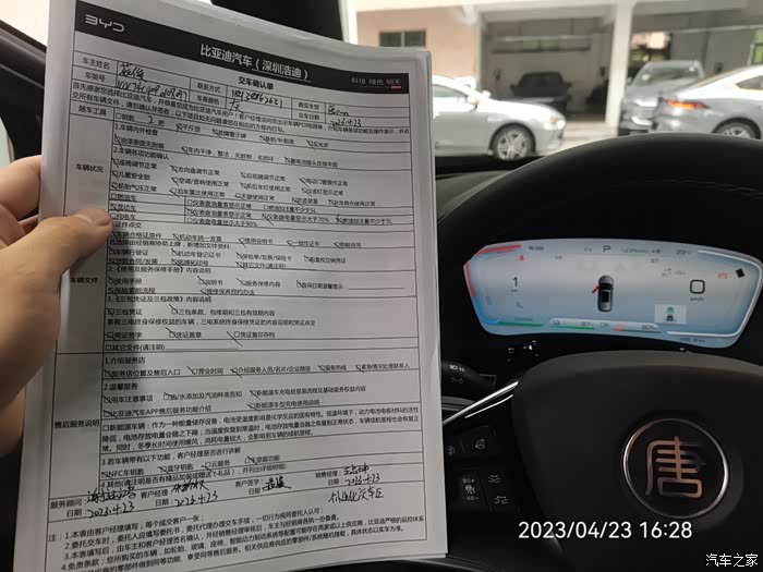 在坪山浩迪超快提车23款唐dmi尊荣,开开心心,23款刚出的时候,很多销售说等车大概一个多月,在网上找到坪山销售,半个月就帮我抢到车了,今日喜提新车