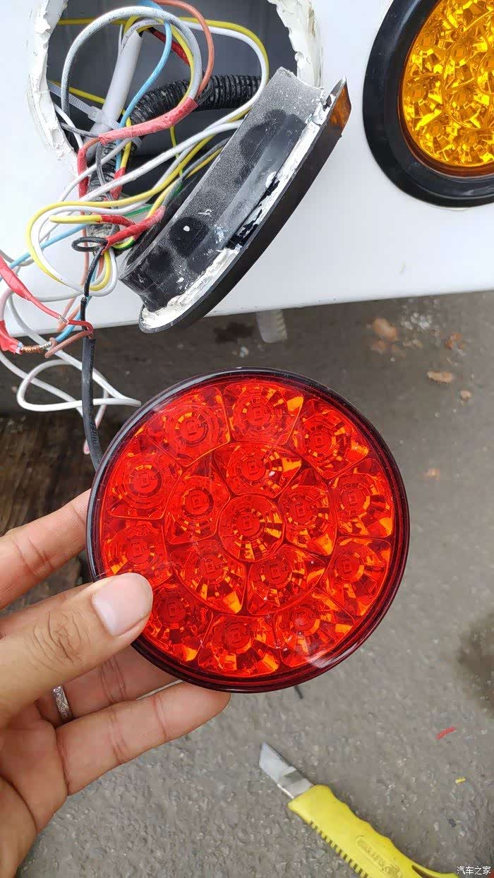 师傅经过检测也说前后车接线没有问题,怀疑灯有问题。果然拆开一试,就是打开夜行灯的时候红灯亮度不够,需要更换红色尾灯!