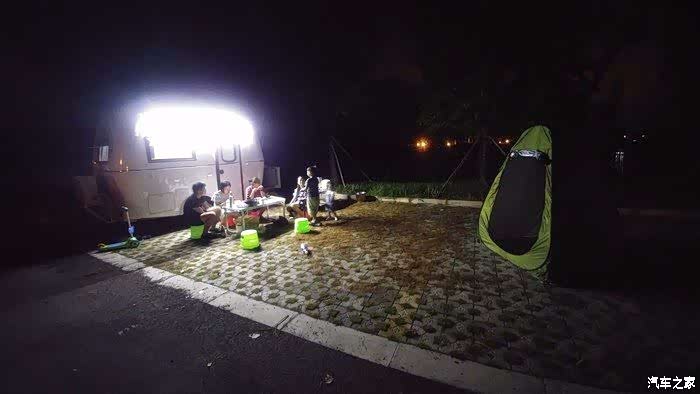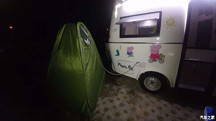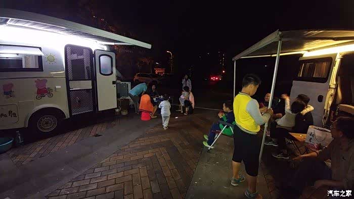 房车车外LED灯带晚上很亮,很多路人寻光过来看房车