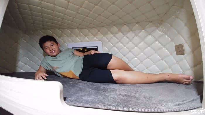 这是桌面放下成为床的图片,胶垫贴合很紧,功能没有受任何影响