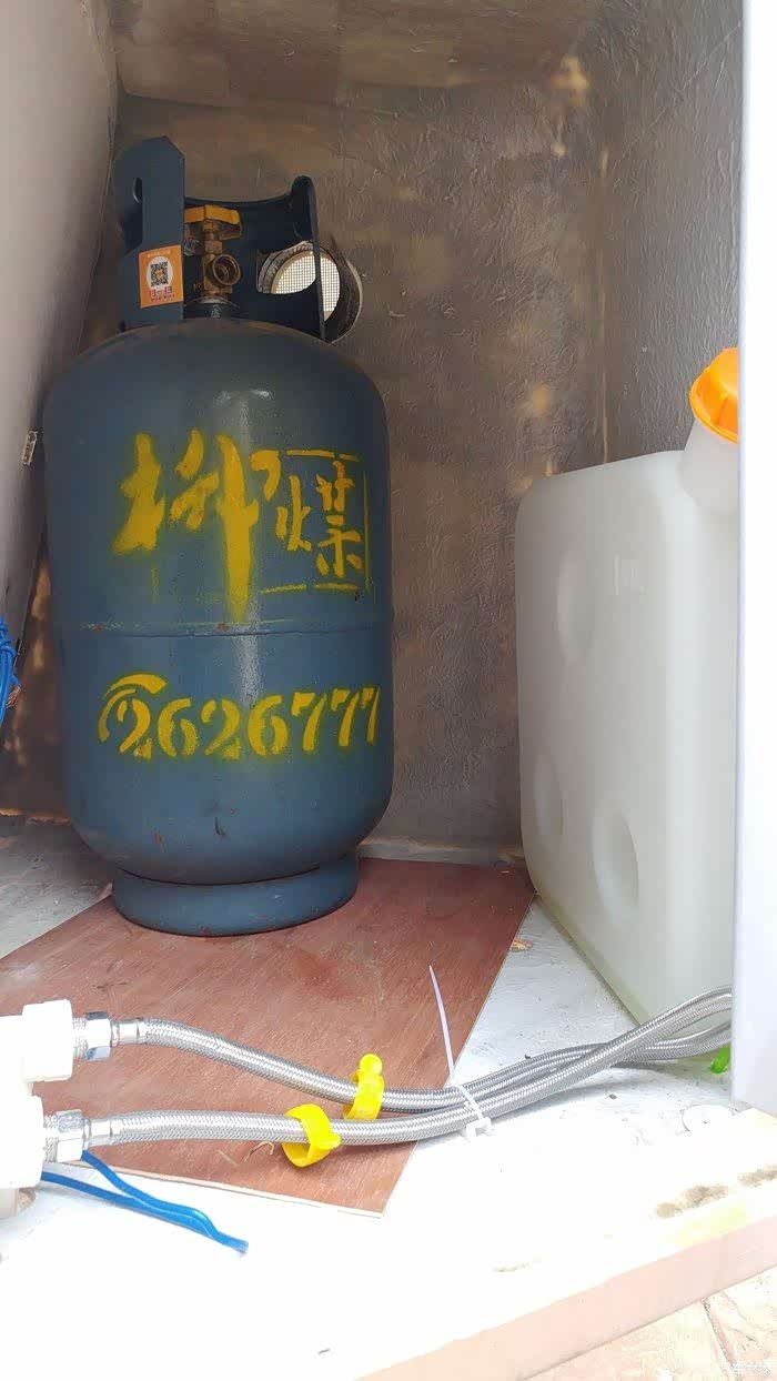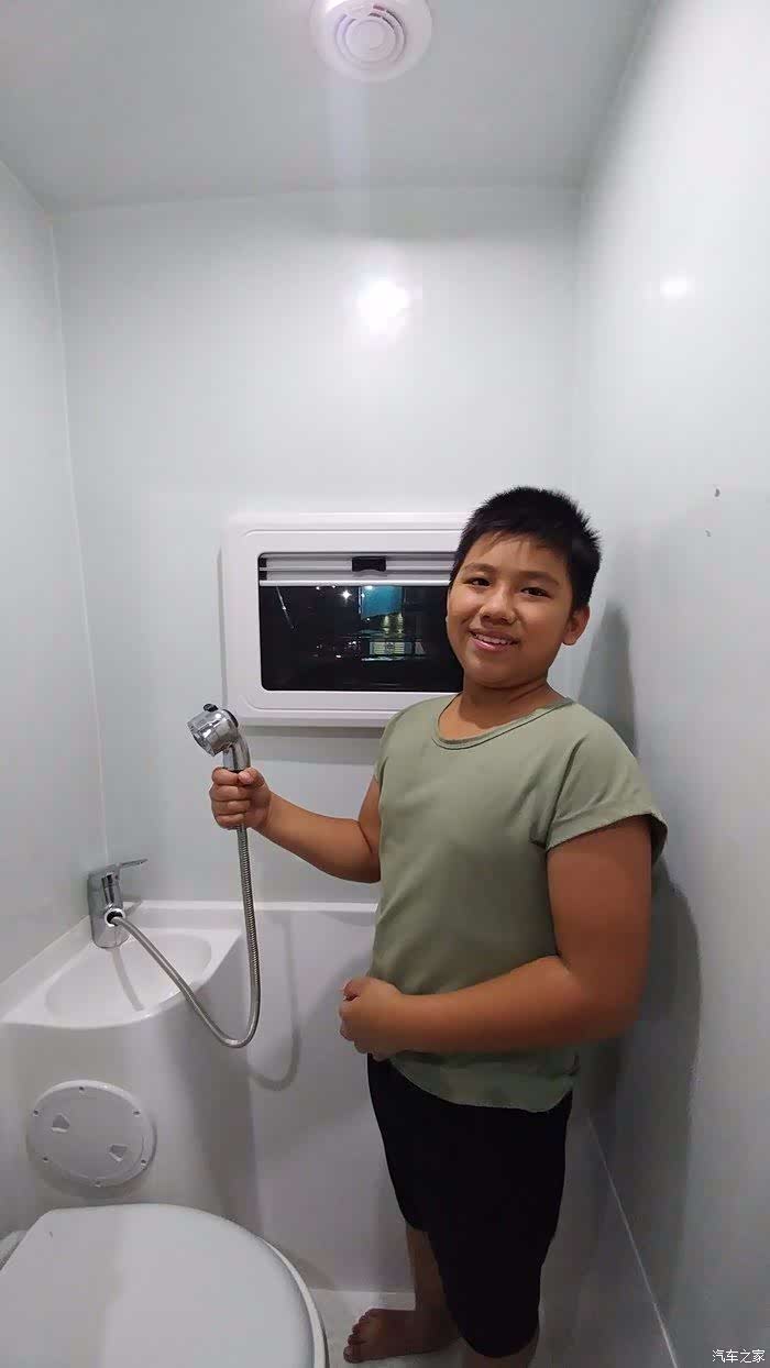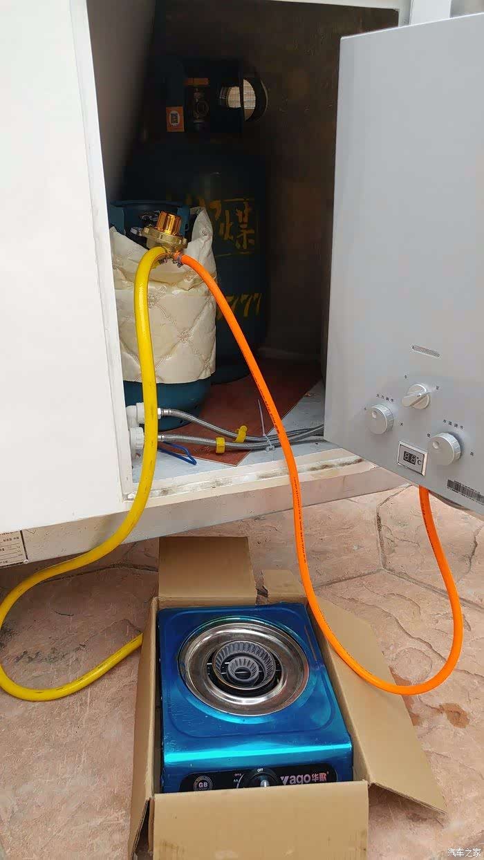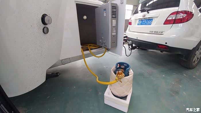 由于路途遥远,所以只带了一个5kg的液化气瓶测试热水器。简单测试一下,热水器一点就着,卫生间、车内洗手池、外置淋浴三个水龙头出热水都很快,达到预期效果。