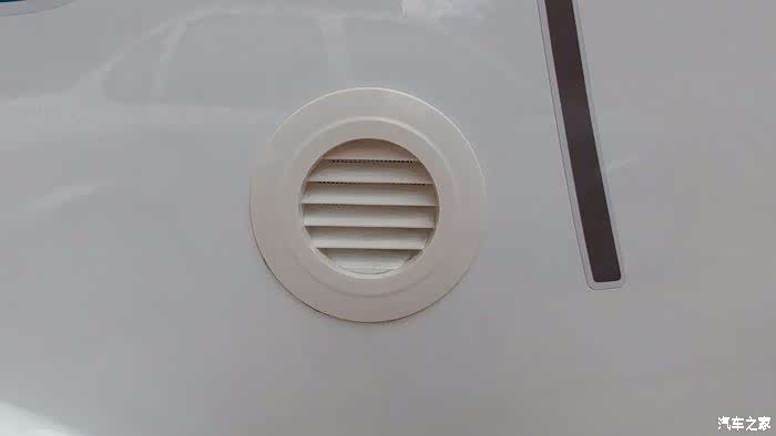 新款房车(白色)220v外接电源盒位置现在设计在房车左侧,靠近房车左后千金顶的上方,和车体平面成一体很平整,有进步