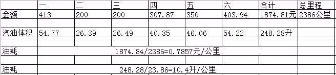 贵州六盘水避暑往返共2386公里,依次记录了加油数据。