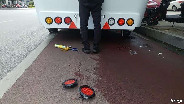 所有连线功能都ok,但就差夜间行车灯不亮,反复排查无果。最后用开后雾灯代替行车灯,但是也只亮一盏红灯,而不是同时亮两盏红灯。因为时间关系,也只能将就用,先返回柳州了。