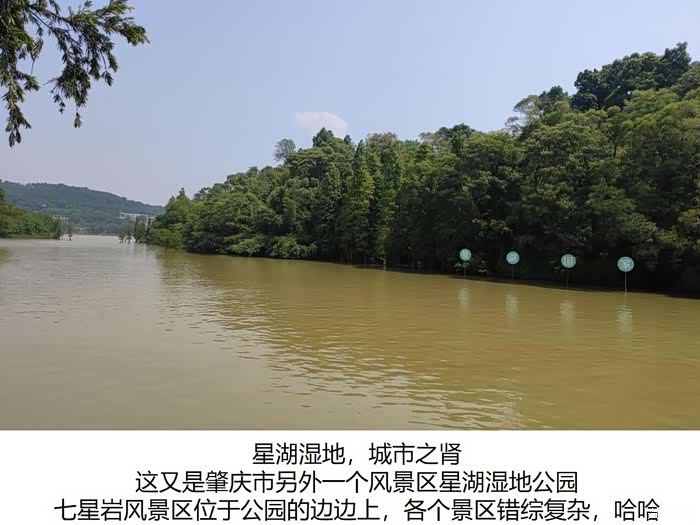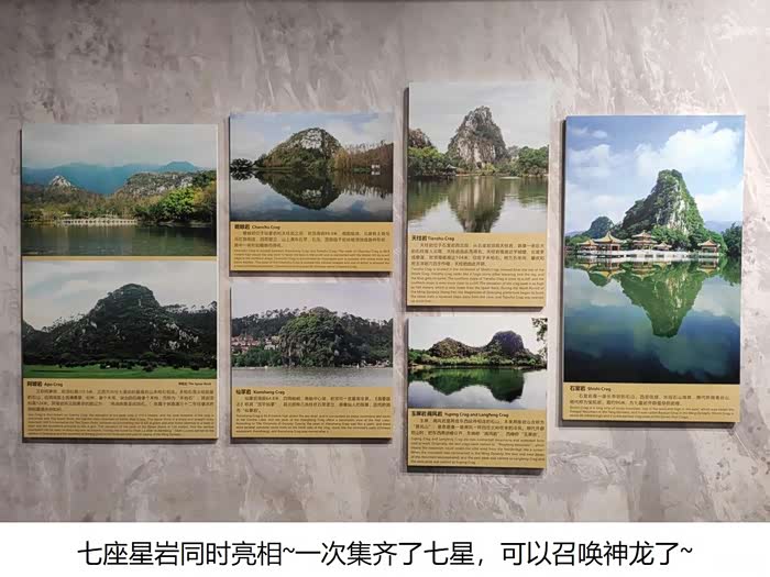 回归正题,肇庆七星岩是AAAA级风景游览区,像著名的桂林山水一样,都是喀斯特溶岩的地貌,七座石灰溶岩山峰如北斗七星般排列撒落在碧波如镜的近600公顷城市湖面上,20余公里长的湖堤又把湖面分割成五部分,因此整个景区由五湖、六岗、七岩、八洞组成。