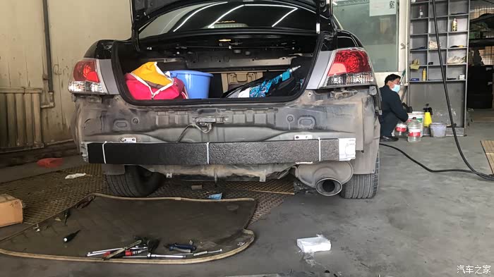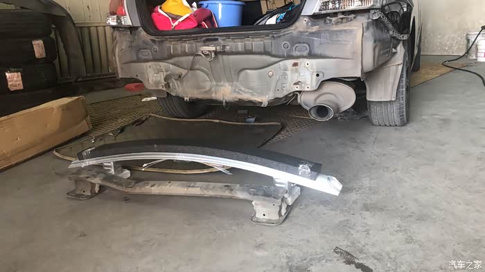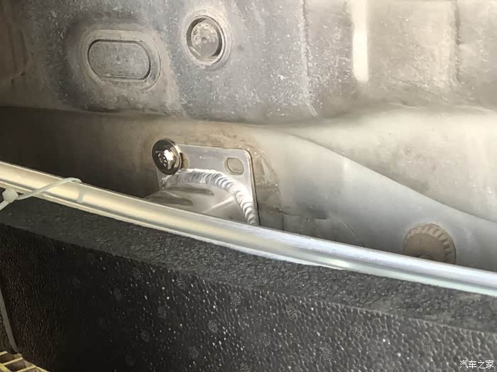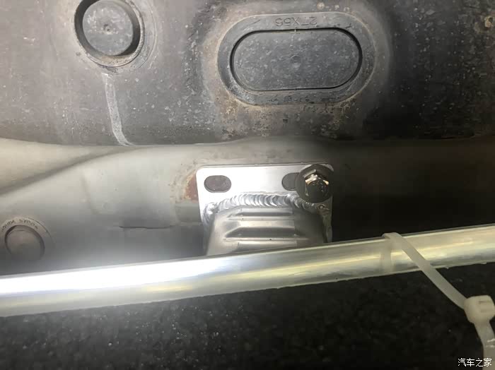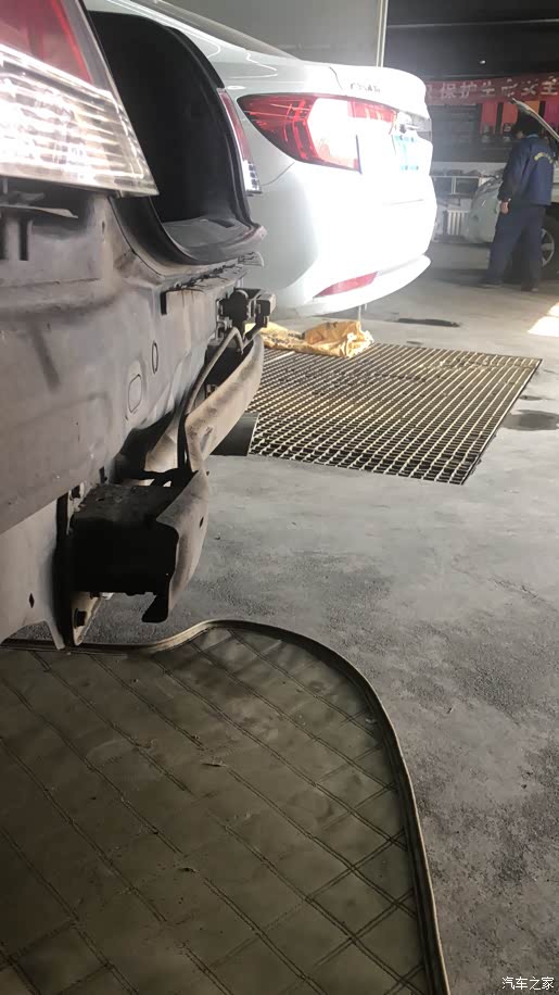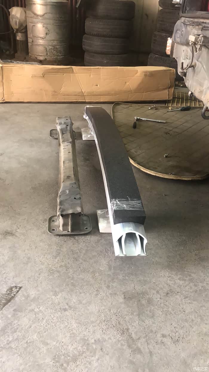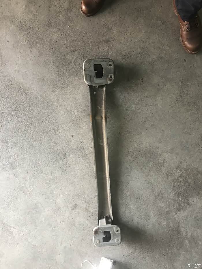 原车后防撞梁太单薄,而且螺丝四个空位只开了三个。