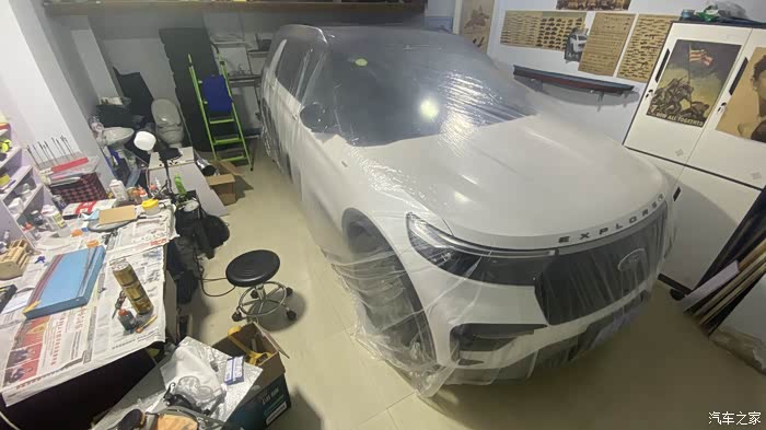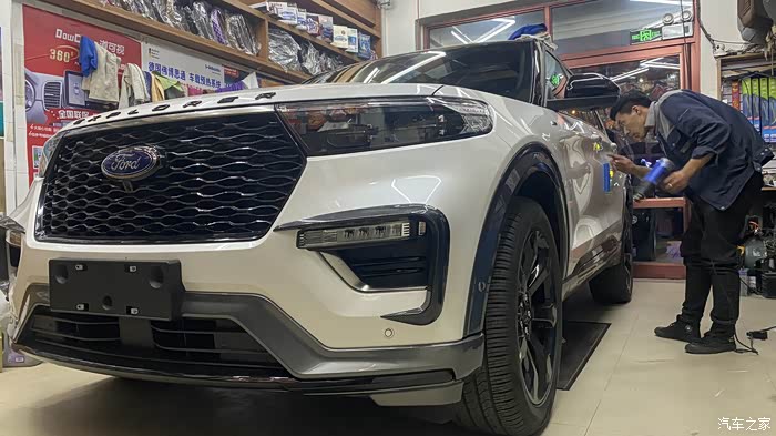 更换的发动机护板 出现了异响~去检修~ 恰好来了一台安装过电动踏板的探险者 我拍了几张照片