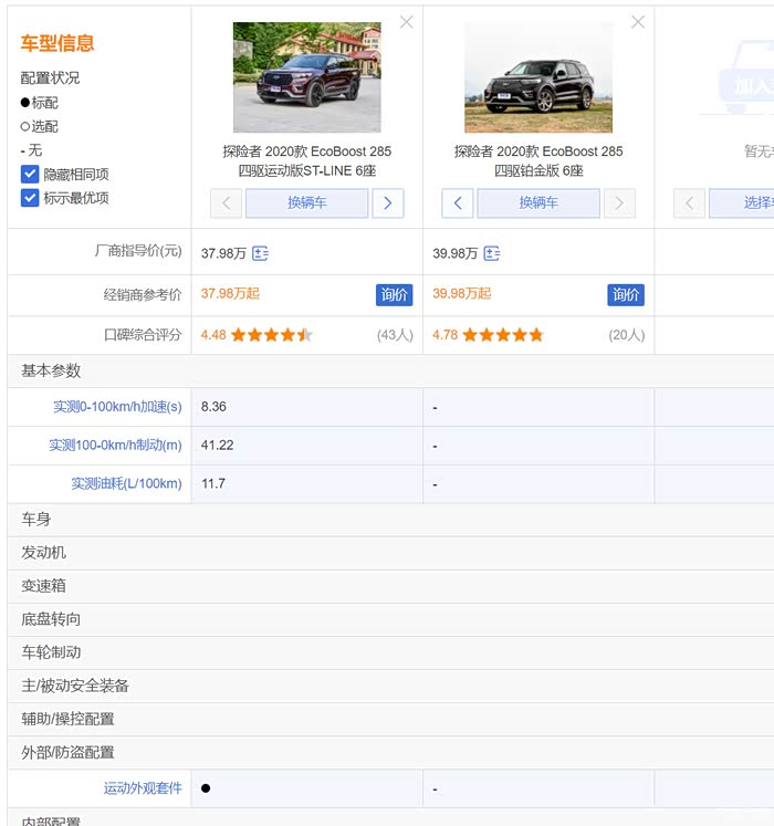 30岁出头搞得那么稳重是不是早了点! 有的人可能会说这么大的车压根跟运动就不挨着 买运动款的有个软用 但是我的审美告诉我运动套件有与没有那就是两台车~! 而且配置上我发现隐藏相同项之后运动版ST-LINE比铂金版多了运动套件反而还便宜了2W不知道什么个情况 这2W差在哪里只不过是我没有发现~不代表没有~