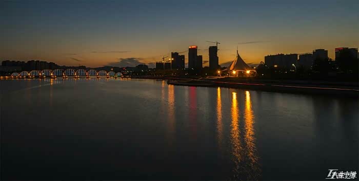 抱龙河自东向西缓缓流过文登,全长10多公里,把城区一分为二。五座大桥似凝固的彩虹横卧其上,九道拦水大坝则挽留着清水碧波。水面烟波浩渺、游鱼欢畅、群鸟翔集,河岸蜿蜒曲折、花团锦簇、树影婆娑,呈现出“水清可浴、岸静可憩、街繁可商、景美可赏”的独特城市滨水景观。