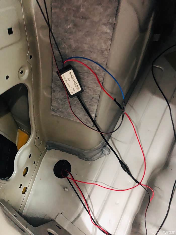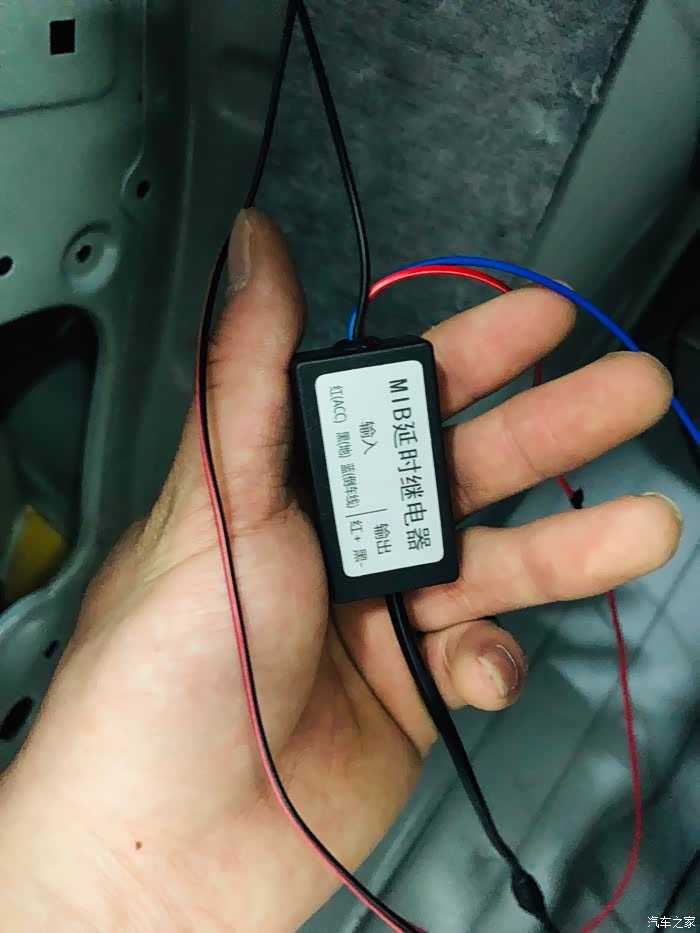 延时器上有接线说明, 红的接ACc 蓝的接倒车灯线 黑的打铁
