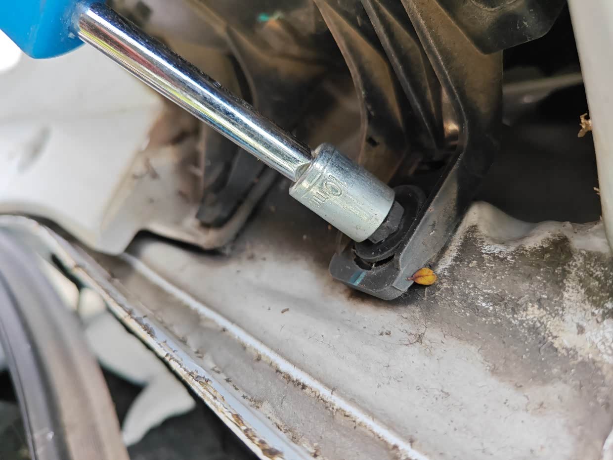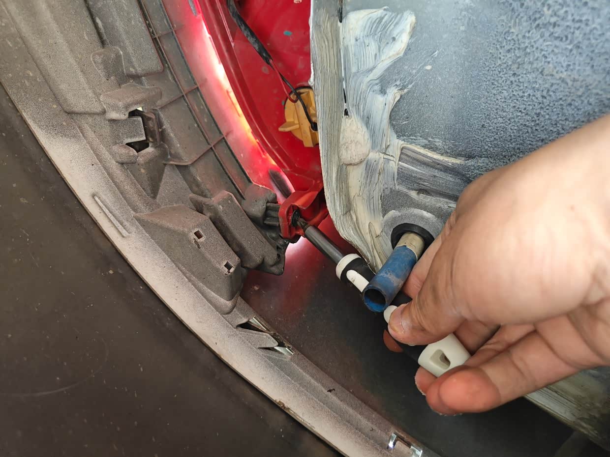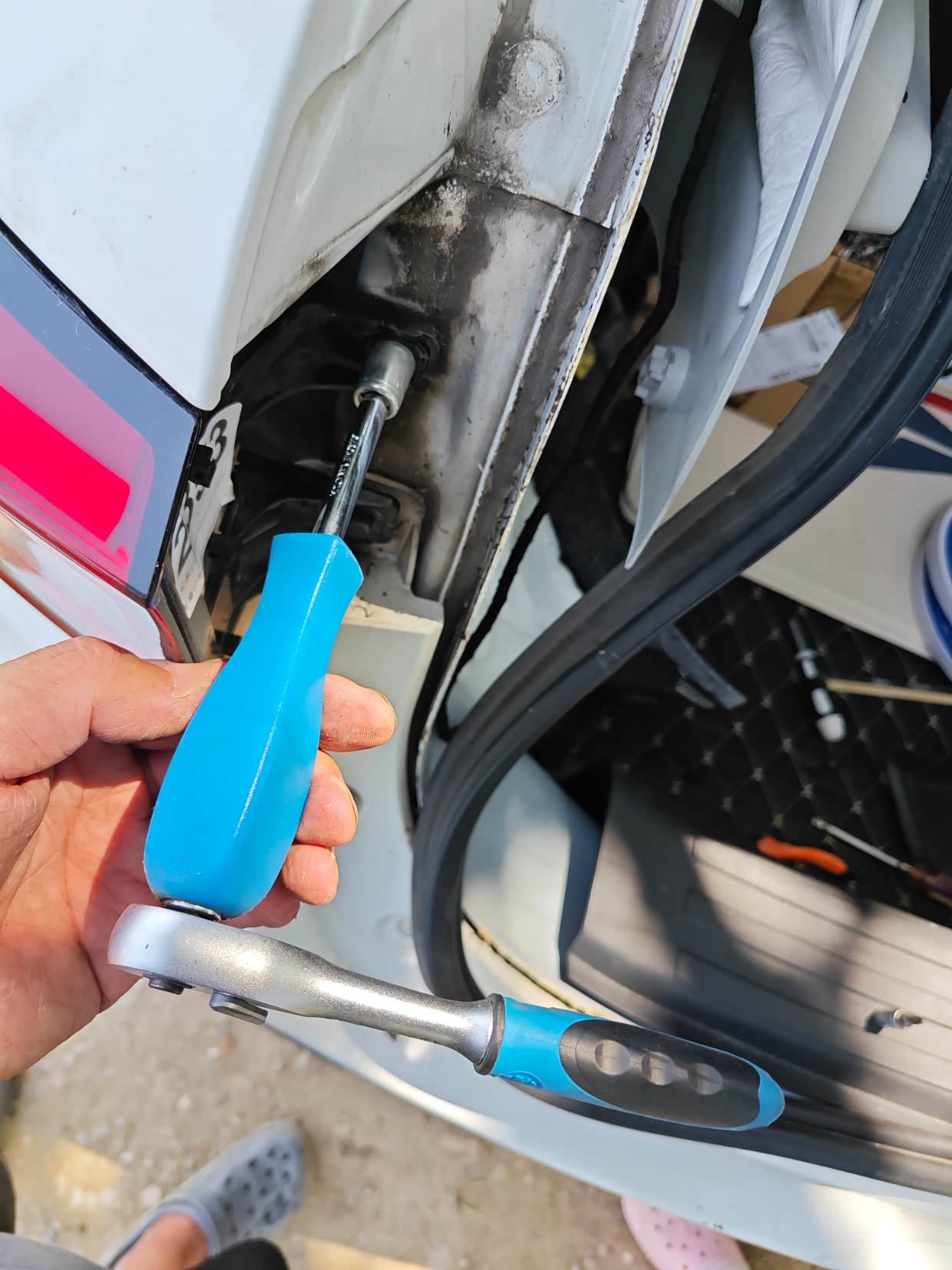 ②打开饰板后就能看见固定尾灯的螺丝了,拧掉螺丝,使用10#套筒