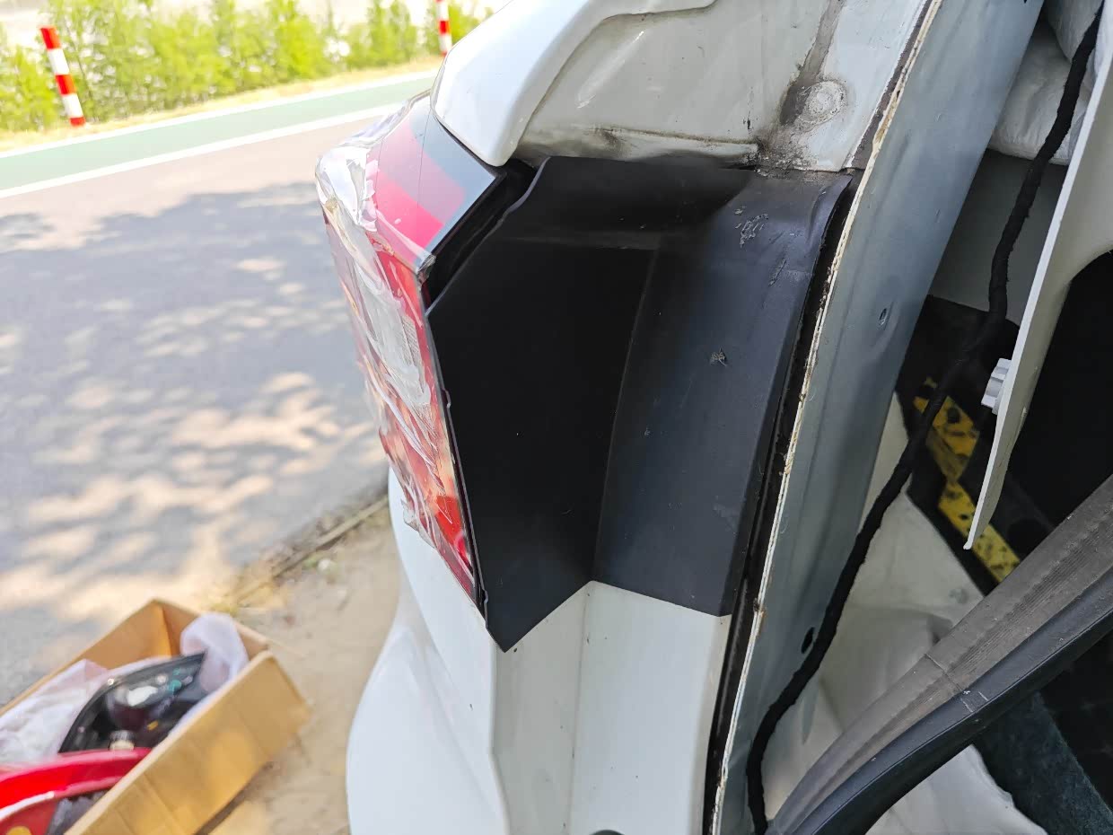 考虑到领导第二天早上还要用车,有可能下雨,所以车灯还需要临时处理一下,防止进水,轮眉这里重新把卡扣扣好就可以了,灯只能把残渣清理一下,然后用透明胶贴住了。