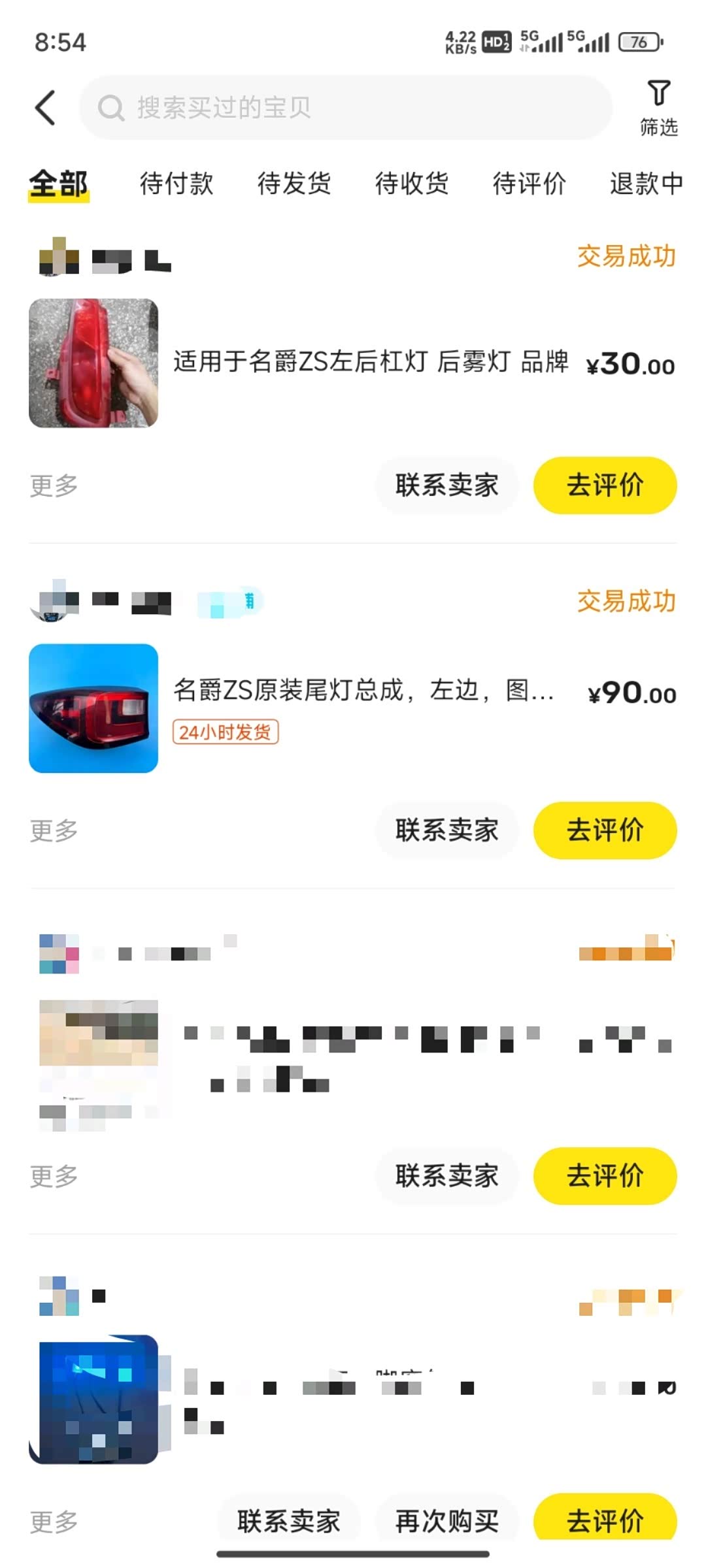 弄完之后就要开始在网上找配件了,大部分都是副厂件,尾灯150左右,雾灯70左右,也有评价反馈缝隙大不贴合,所以又去海鲜市场找了一圈二手拆车件,资源还是挺多的,一下就找到了,又跟老板砍了下价,最终尾灯90,雾灯30的价格下单了。快递三天就到了,确实挺快。看起来成色还行,主要是原厂件,应该更加严丝合缝,至于新旧就没那么重要了。