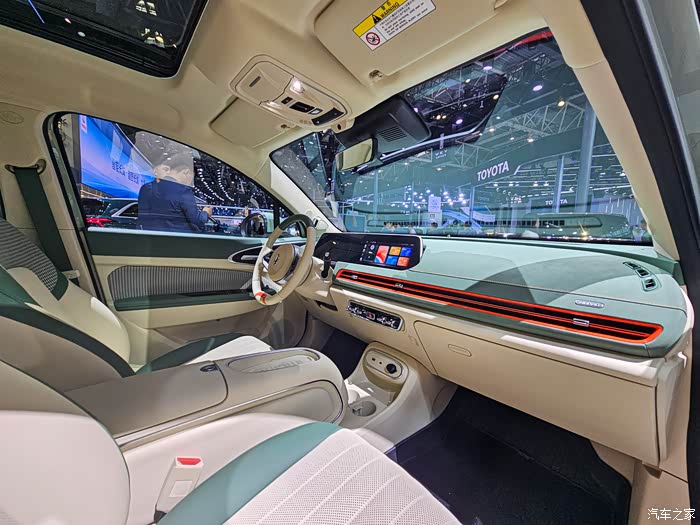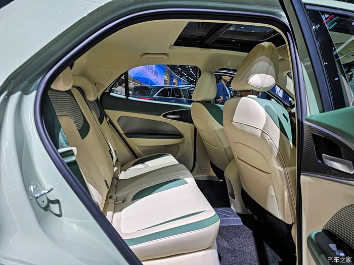 内饰跟外观一个色系,都是走的清新绿色,可以说内外相互呼应