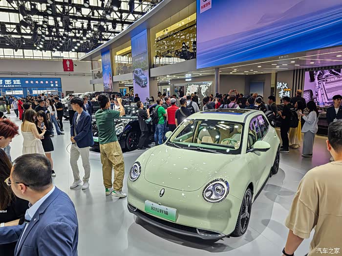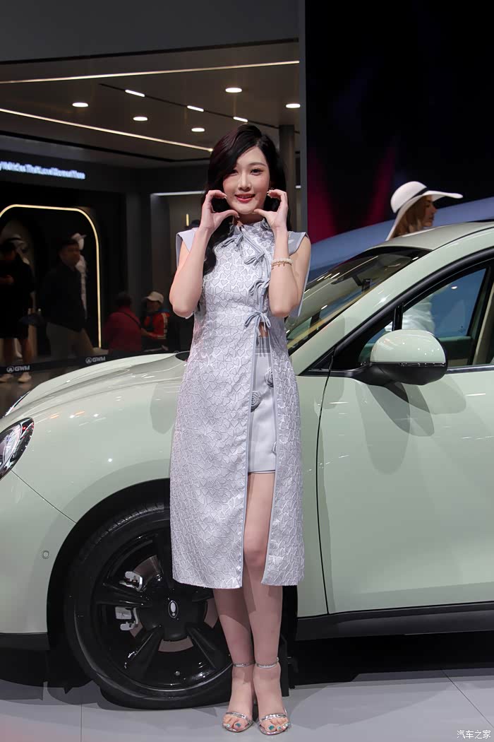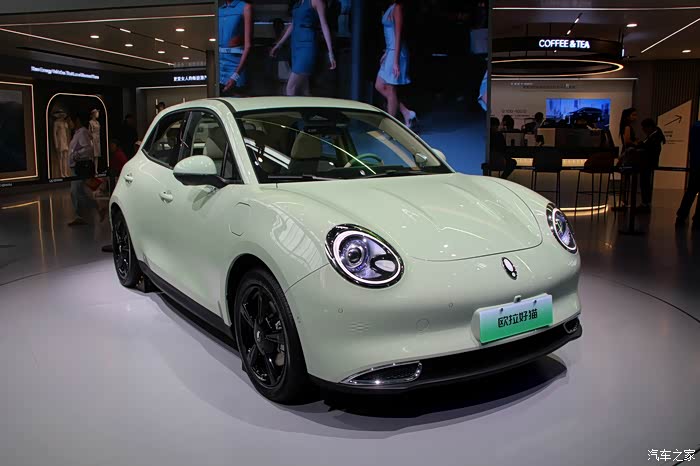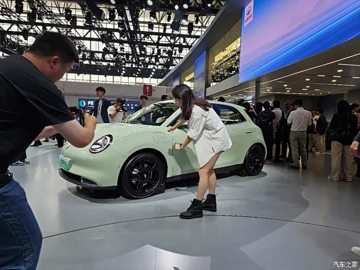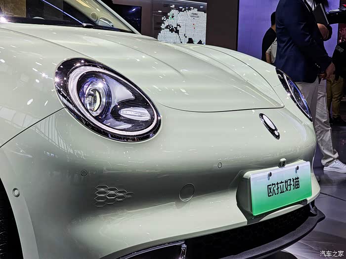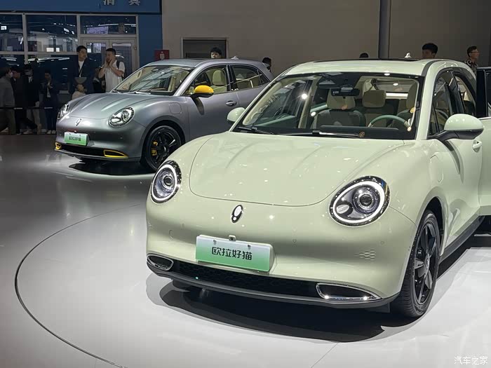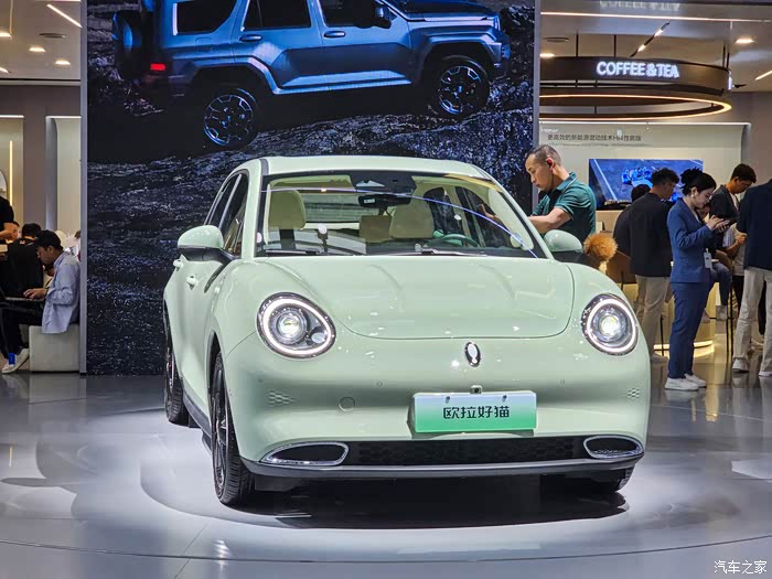 这次也是第一回见长城几个品牌放一个大展台,还挺壮观的,穿过人群,这辆奶油绿的欧拉好猫真的一眼就被注意到了,非常清新淡雅的颜色!
