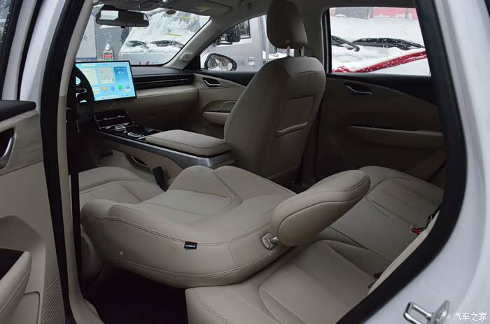 2800mm的轴距,“躺椅设计”,前排座椅可与后排坐垫齐平连成躺椅,后排过道宽度能达到390mm,腿部间最长活动空间1米,不过受制于大溜背的造型,头部空间比较局促,但是也可以说一脚迈进了B级车的标准。