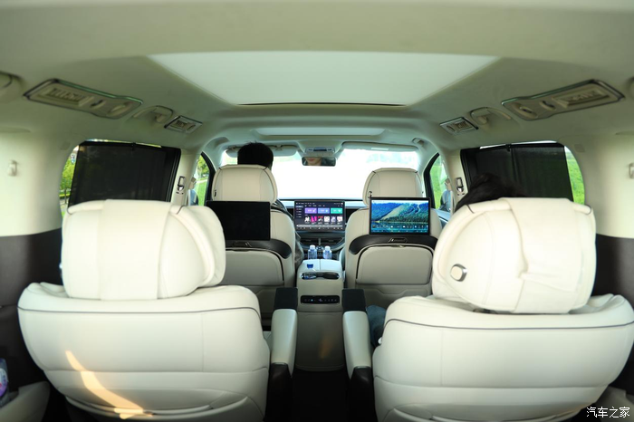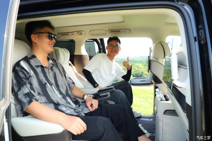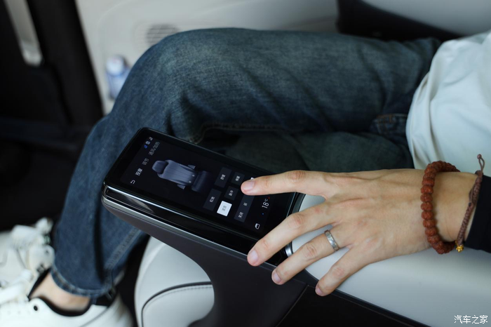 前排的主副驾座椅和第二排座椅还能进行多项电动调节,加热通风和按摩功能也都带了。第二排的扶手屏也能触摸控制座椅的各项功能,感觉就像是在坐头等舱,舒适感很强。还有腿托的功能,半躺休息也一点问题没有。说是来露营,这哥们感受过独立座椅的舒适后根本不愿意下车。