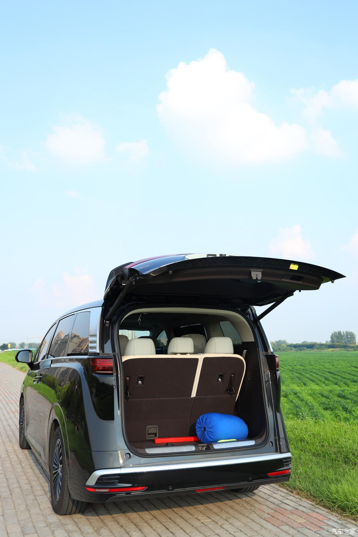 除了车内空间很大之外,腾势D9电动后尾门的设计也让拿取物品更加方便了,后备箱也能放置一些物品,而且第三排座椅能够放倒,放倒后也能够给后备箱扩展更大的空间。晚上直接在车上睡都没问题。后备箱还有220V电源接口,露营时用电就方便多了,就像带了一台发电机,露营不要太香了。