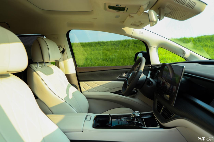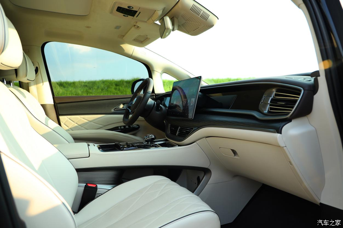 内饰就更豪华了,手能接触到的地方都做了软包处理,真皮座椅的质感也很好,整个车内都给人一种温馨舒适的感觉。中控区15.6英寸的中控屏+10.25英寸的液晶仪表屏科技感很足。我还选装了中排座椅的双头枕屏,接待客户时高级感很强,很有面子。