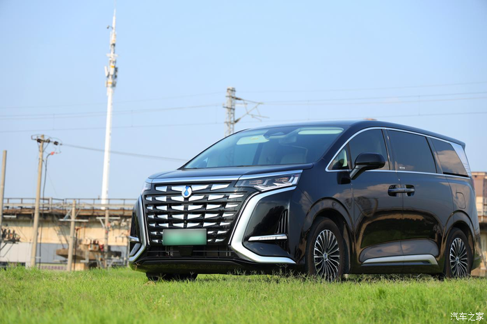 腾势D9的外观设计很大气,成熟稳重的感觉,整体的造型棱角分明,也很有商务感。前脸设计了大尺寸的进气格栅搭配两侧犀利大灯,看着霸气十足。车身的线条也很流畅,再加上电动侧滑门,很有档次,上下车也更加方便。这哥们就很喜欢这个电动侧滑门,非说下车时有一种大佬出街的感觉,也是没谁了。这车的车尾贯穿灯的设计也很有辨识度,整体外形颜值很高,车身高大,却没有传统MPV的臃肿感,很时尚,年轻人开也很合适。