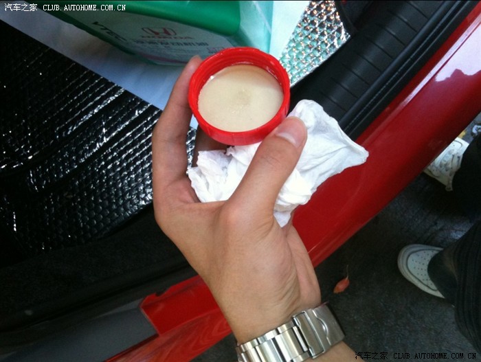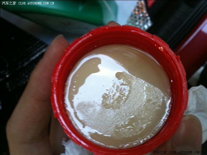 方法很简单取少量机油,直接倒盖子上了。(倒多了小心没拿好倒出来)
