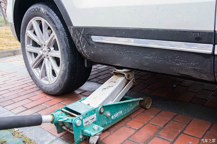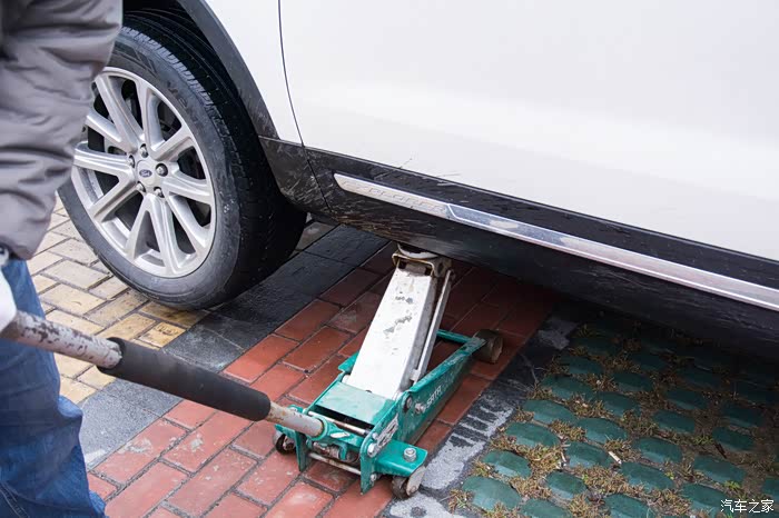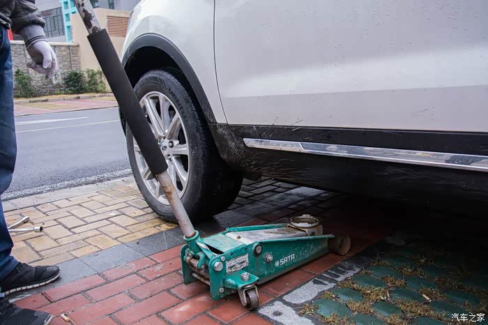 首先千斤顶移到正确的位置,然后慢慢伸进去。