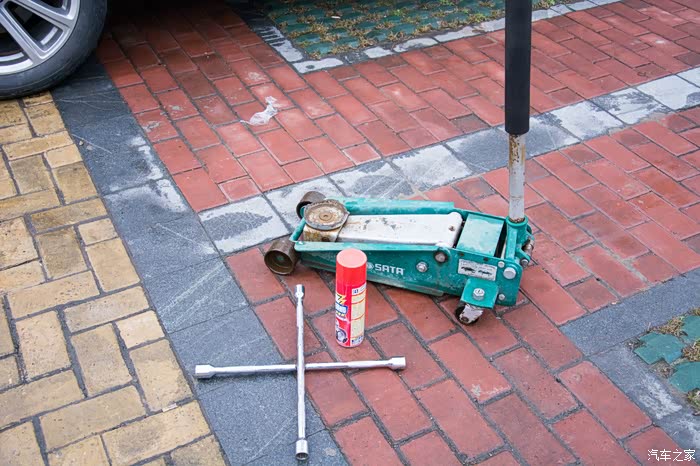 清洗液都买了,总不见得不弄吧,而且车上的工具拆轮胎也不是很方便,毕竟是给你应急用的,干脆借个工具算了,找了个汽修店,付点押金用完再还回去,于是花300块押金借来了千斤顶和扳手。