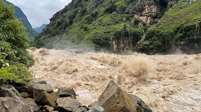 怒江名副其实,汹涌咆哮,一泻千里,气势如虹,这是虎跳峡