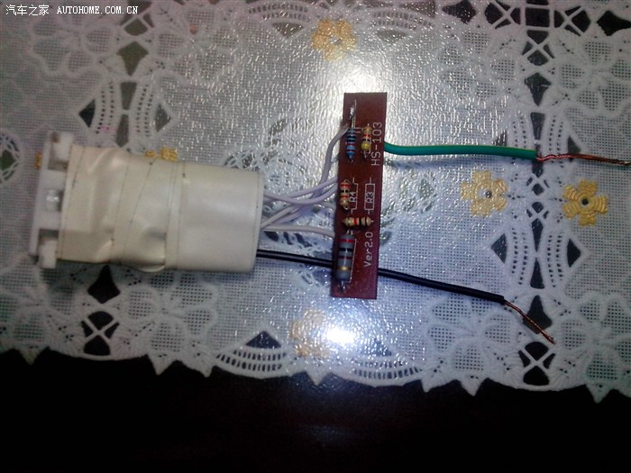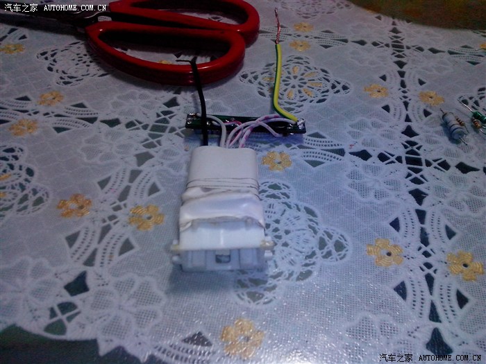 难道是电阻有问题吗,又发帖询问,没有结果,连续又调试了几天,依然不能使用,到底怎么回事?这个疑问整天充斥在脑海中,一有空就在想,始终不肯放弃。别人能用为何我不能用,于是有了找专家的念头,到宏达汽配城2期看到一个专门修理汽车音响的门市正在挂喷绘的宣传栏,问了老板,说是还没开张,正月二十五才开张,让我等几天过去,一定帮我弄好,人家说专门就是干这个的。还有好几天,等不及了,正好今天下午无事,坐在车上思考,难道是按键坏了还是接收器坏了,拆开了方向盘音响控制按键,当时没有小螺丝刀,又原样装了回去。于是又把捣鼓的这个方控插座拿出来再调试故障依旧,又拿起插座仔细端详,突然发现地线和插头的地线不在一条线上,恍然大悟,怪不得有两个按键没反应呢,回家,重新焊接,下楼,再试,哈哈,终于成功了,功夫不负有心人呀,接错线让我绕了这么大一个弯路,今天晚上喝一杯小酒庆贺一下。