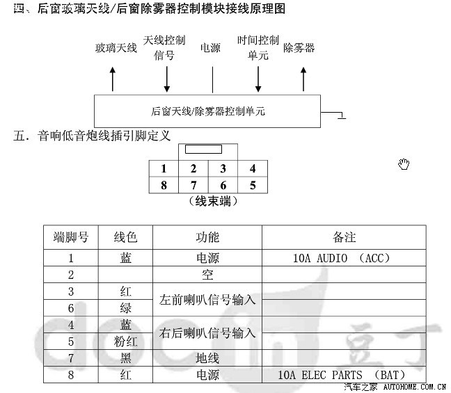 为了彻底弄明白原车音箱背部接口的含义,网上搜到了蓝鸟081音响系统线路图和方控原理,图如下: