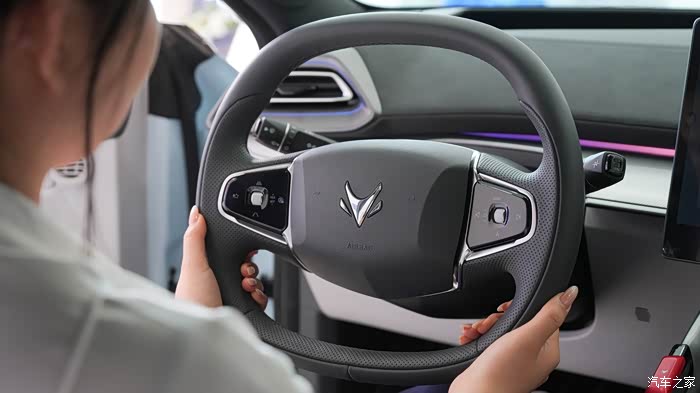 双幅式的真皮多功能方向盘握持手感非常舒服,而且上下平面的设计也很有科技感。
