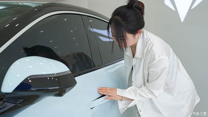 车身漆面是重点检查的部位,因为经常会因为运输而对车辆车漆产生一些划痕,好在妹子这辆车完好无损。