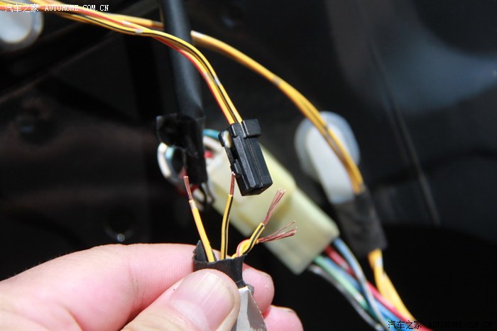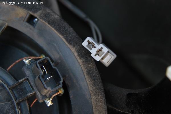 原车的喇叭是预置的插线,和新喇叭不配套,剪了,重接。
