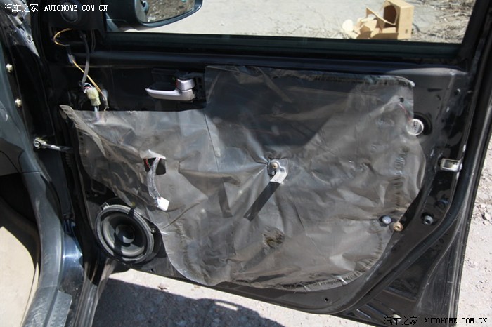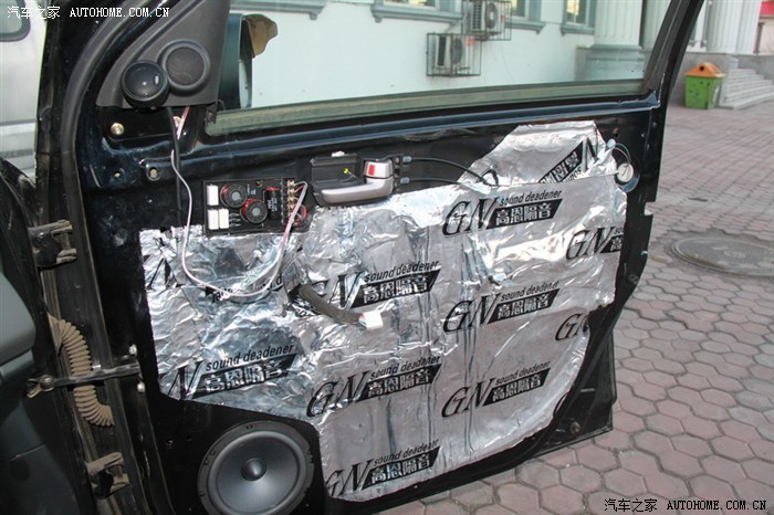 用剩下的隔音棉边角料把内饰板的内侧也贴了,敲了敲,貌似效果一般,不如弄点止震板好。