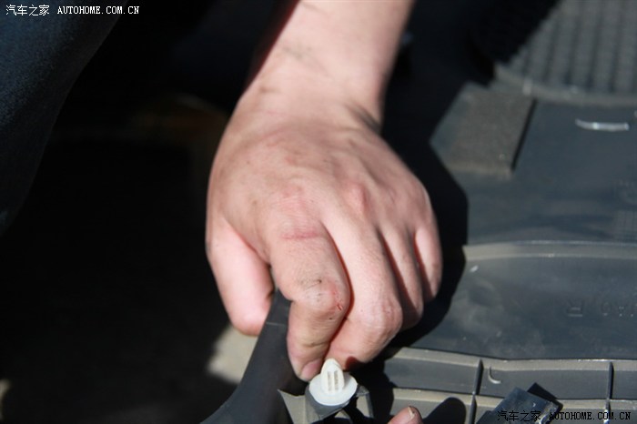 白色的卡扣有的在门上,有的在饰板上,经过弄坏一个卡扣后得出的结论是:应该把卡扣弄下来装在饰板上再安装,弄的时候从里往外压出来,不能硬拔,一拔那卡扣就废了。