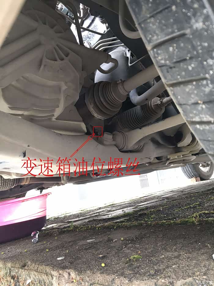 再给大家展示一下变速箱油位螺丝的位置,这个螺丝很隐蔽,更不好操作,但你一定想知道的。