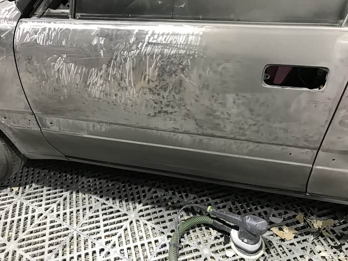 刮掉老旧问题漆,原车的钣金裸露了出来,铁皮上的锈也被漆匠师傅刮的干干净净