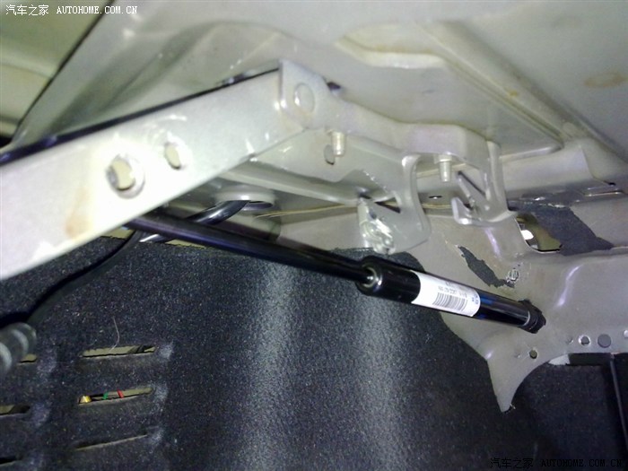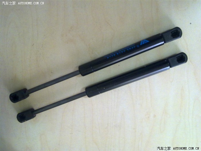 劳动人民的智慧是无穷的,网上也有很多例子,用弹簧什么的,增加弹力,等等方法,但都不是我想要的。先找了个以前厨房剩下的气压杆试试,发现弹力根本不够。并且固定也很麻烦。然后在网上选合适的气压杆,因为都是专车专用,没有尺寸,图片也看不出来,先买了一对中华骏捷的后备箱杆,发现行程短,力度也不够,后来继续寻找,最后选中迈腾的气压杆,390N的力度和近40cm的长度估计也差不多,又买了奇瑞气压杆螺丝,和8mm螺母4个,准备好工具,开始了我的改装之路。