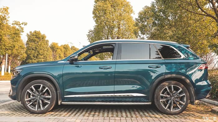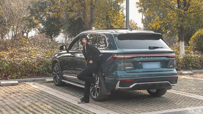 侧面看,星越L的车身很长,达到了4770mm,上次和一个朋友的中型车停在一起,在气场方面,它不输中型车,有一种越级般的感觉。