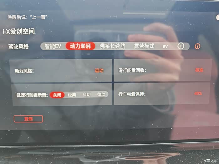 出发之前,也可以通过车辆的空调系统,与通过app提前将空调与座椅加热提前开启,加速车内温度上升,并通过“i-x动力澎湃模式”强制启动,利用发动机热度加速车身积雪融化。