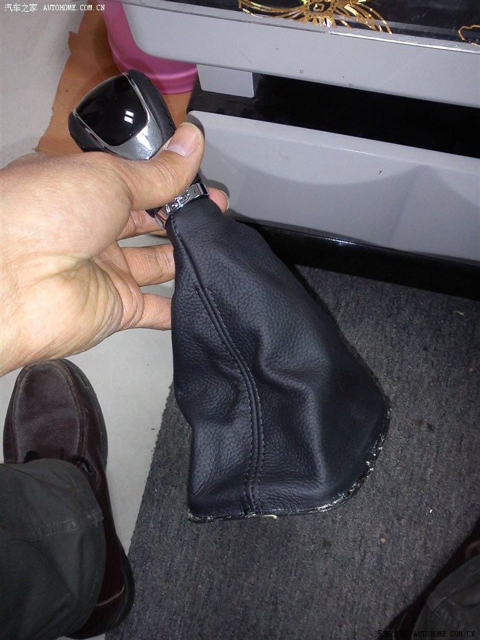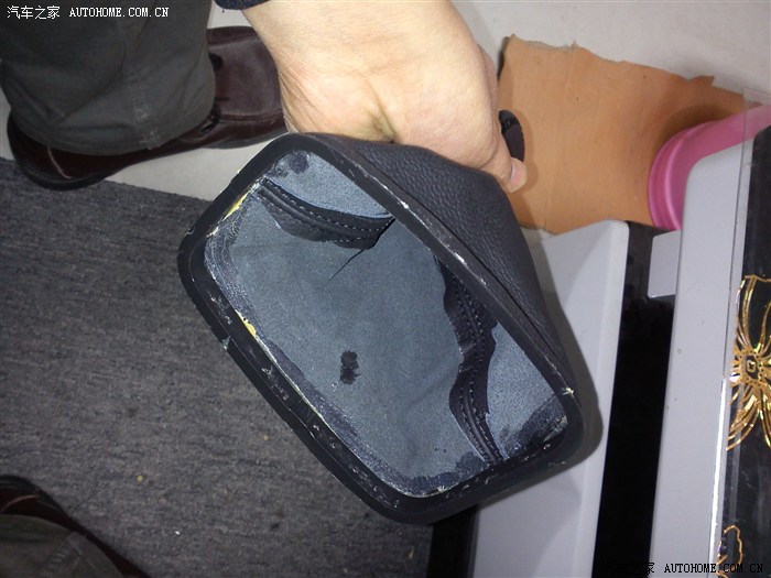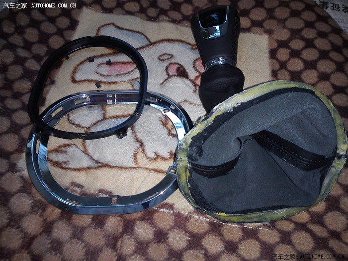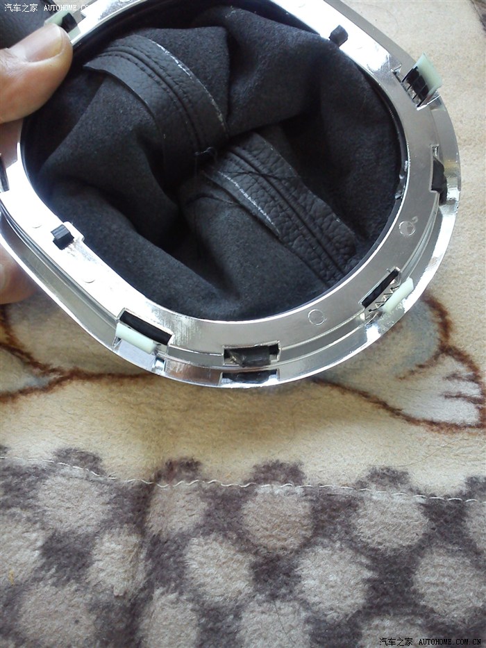 第三步,找了点万能胶,把拆好的G5档把皮套粘在原车的黑色内圈上!