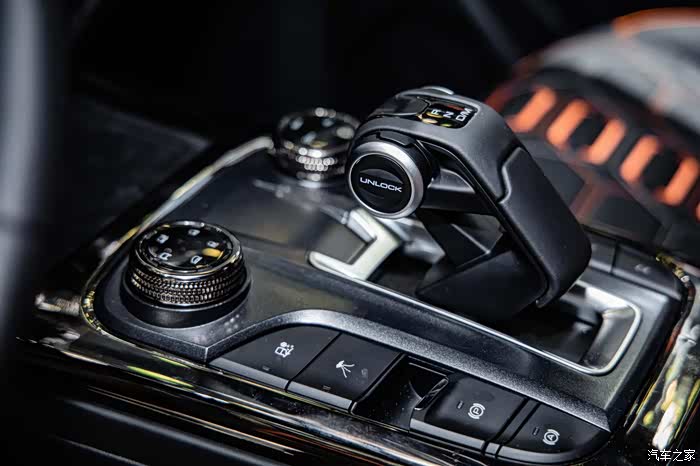 飞机档把式的电子挡把造型也很独特,采用了镂空设计,表面有皮革材质包裹,手感应该会不错。