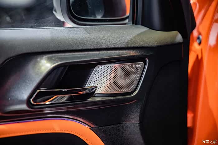 配备燕飞利仕音响系统,音效肯定不错,扬声器位置也使用了金属材质的面板进行装饰,细节方面做的很好。