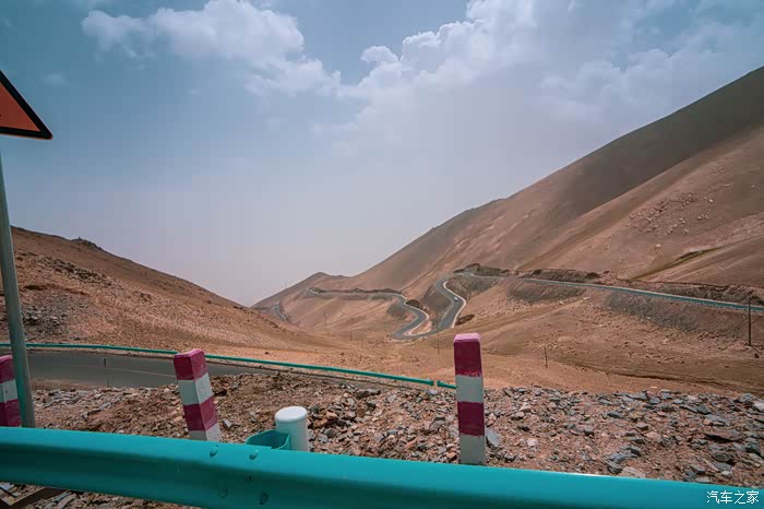 我们是从西起点进入盘龙古道的,位于塔县以南G314大约30公里的位置,有很明显的指示标牌。按照标识往东拐,马上就可以看到西起点的位置。与“今日走过了所有的弯路,从此人生尽是坦途”标语牌拍合应留念的车人不少,需要排队等一下。