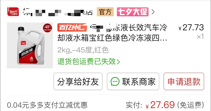 防冻液 红色。