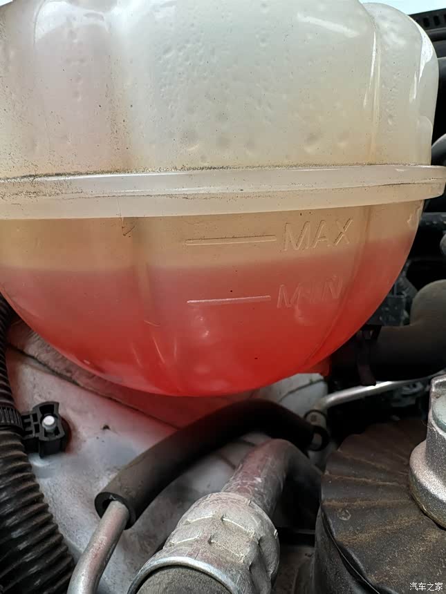 这个也好看。防冻液溢壶上有标识min和max在凉车的时候不低于min不高于max就ok了。