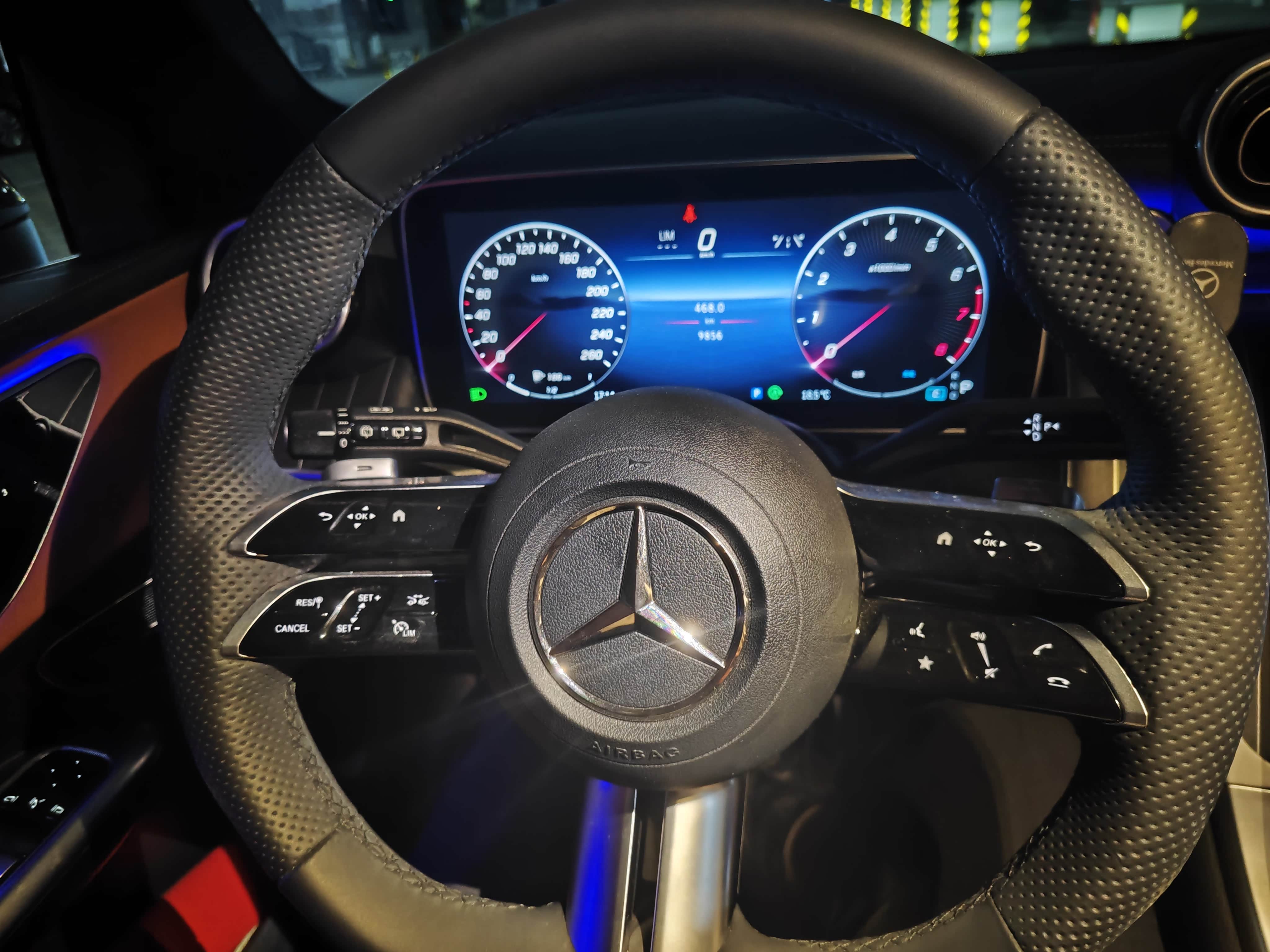 回程时我执意让妻子开奔驰,自己则开着之前的EVOS跟在后面。后视镜里,我看到她开得很慢很稳,孩子们在后排开心地朝我招手。等红灯时,她忽然降下车窗,对我喊了一句:“我好紧张!奔驰内饰真好看。”