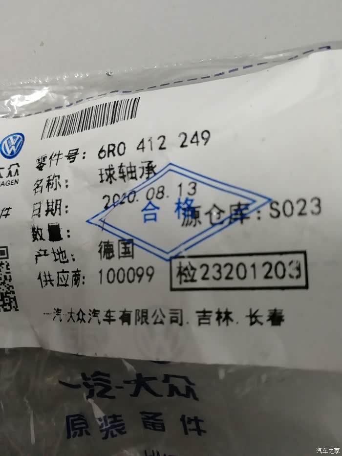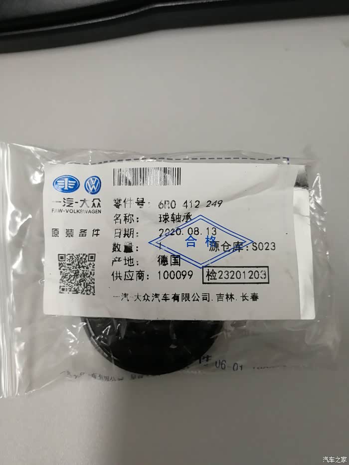 来自一汽-大众原厂配件,带零件标识